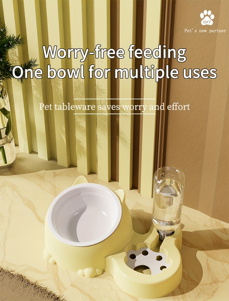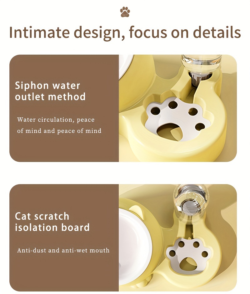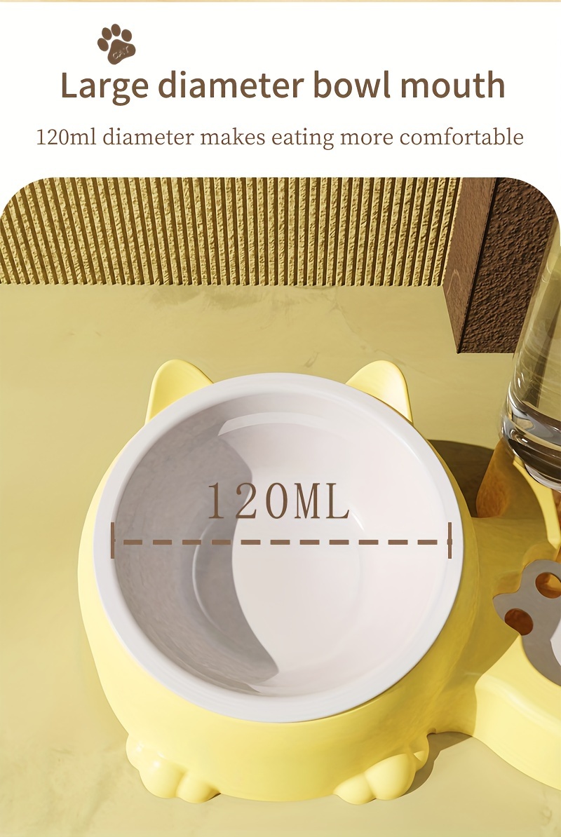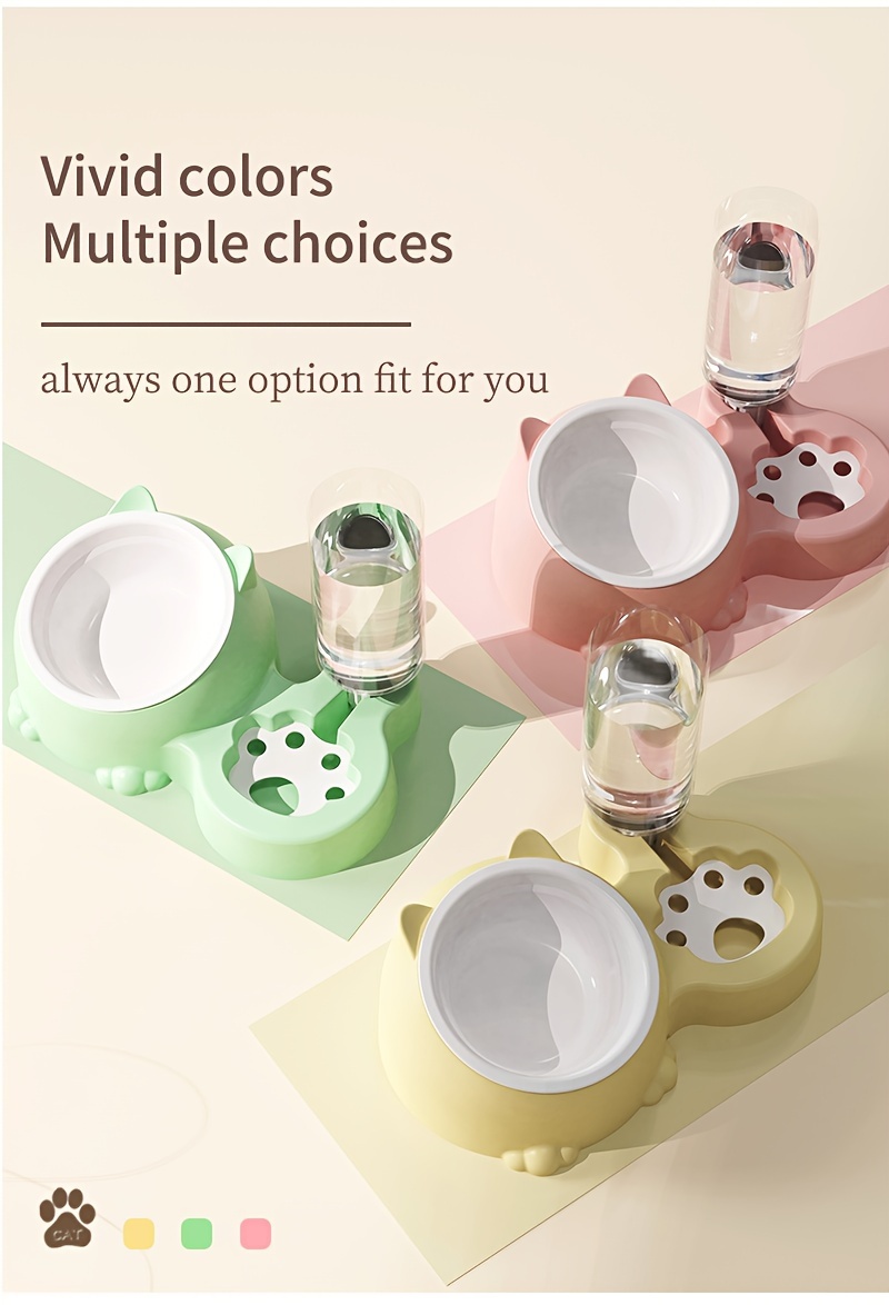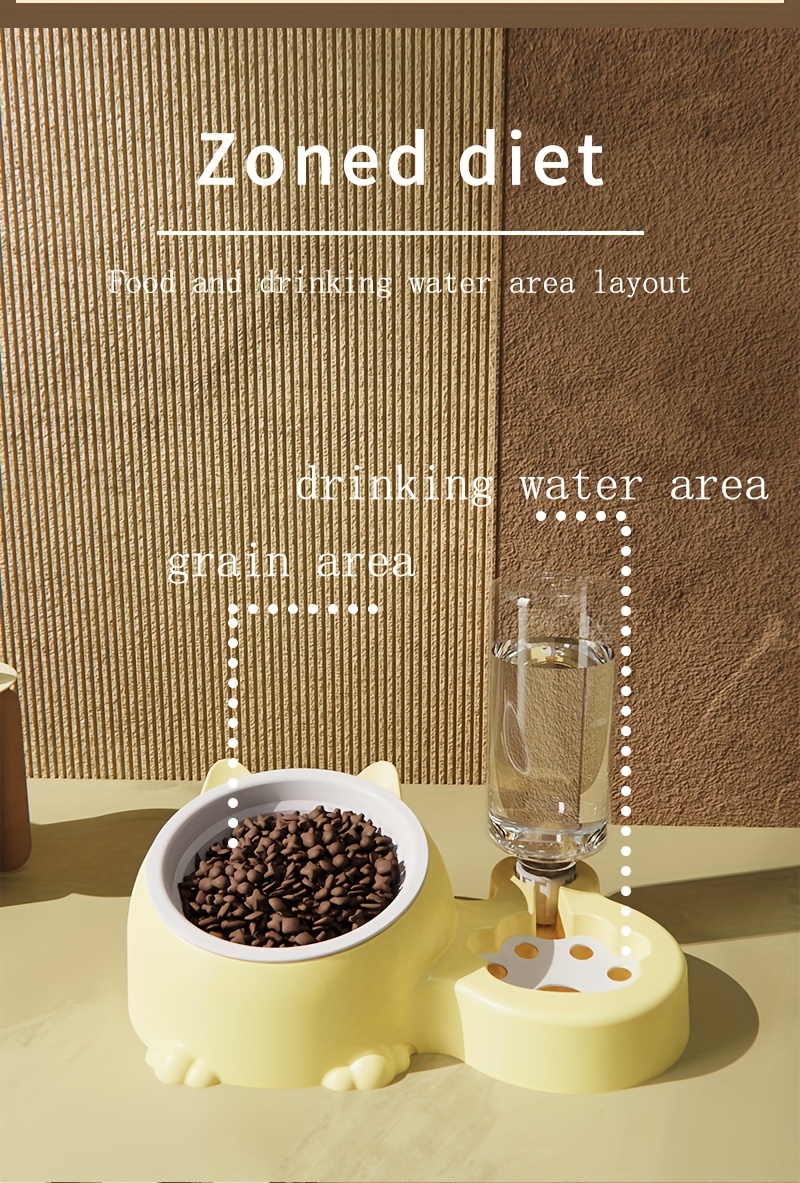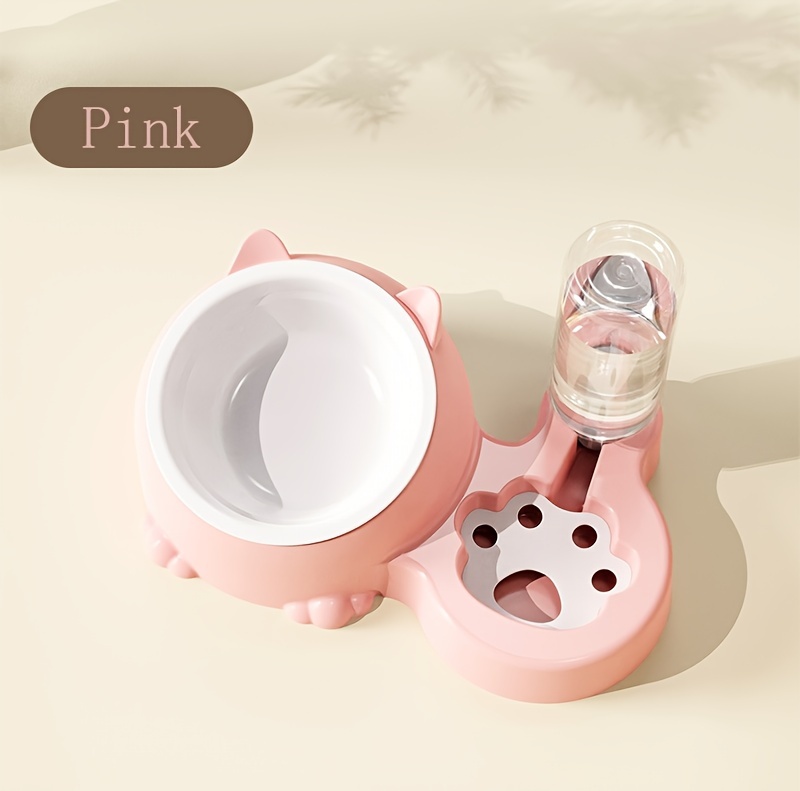 Cat Food Bowl, Elevated Cat Bowl, Automatic Water Dispenser, Anti-Overturn, Non-Slip, Round, Plastic Material, with Feeding and Watering Functionality, for Cat