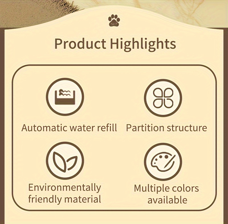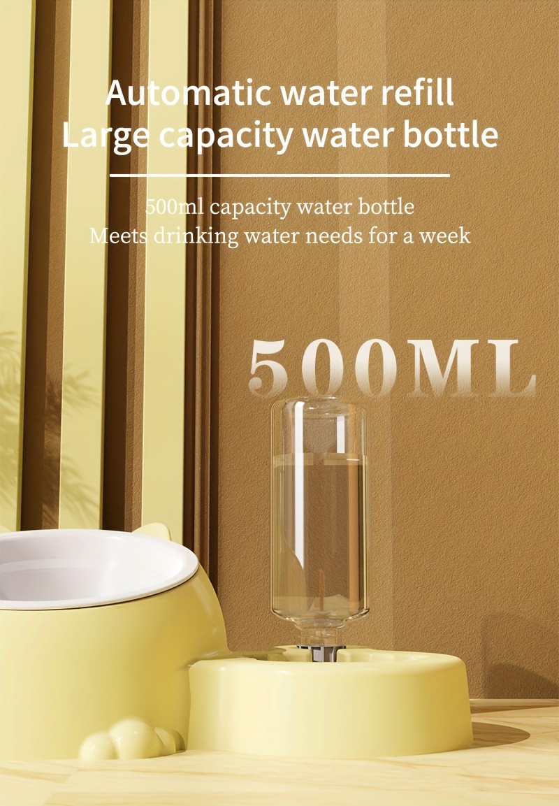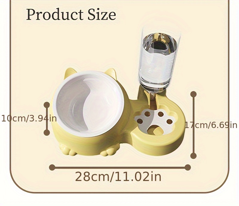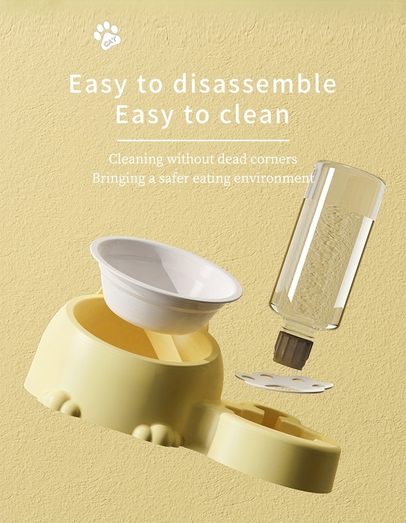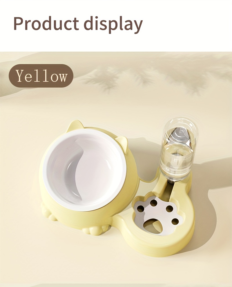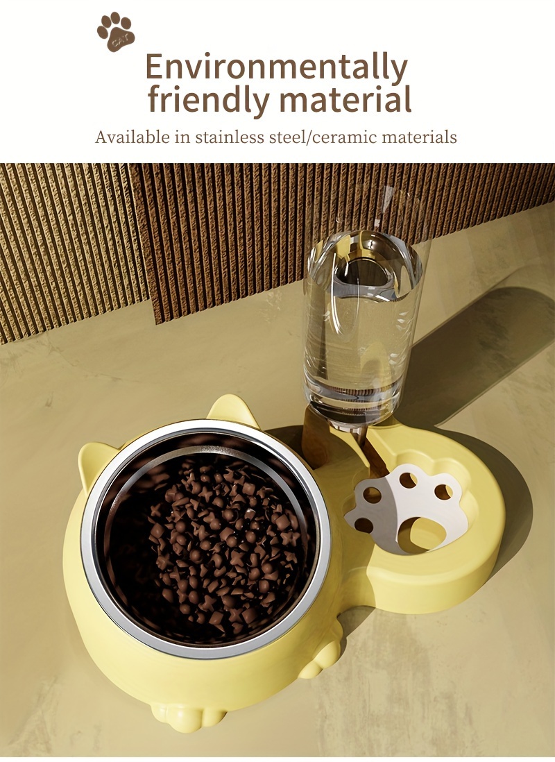 Cat Food Bowl, Elevated Cat Bowl, Automatic Water Dispenser, Anti-Overturn, Non-Slip, Round, Plastic Material, with Feeding and Watering Functionality, for Cat