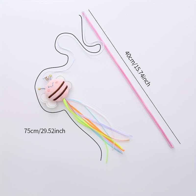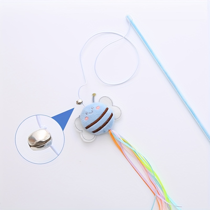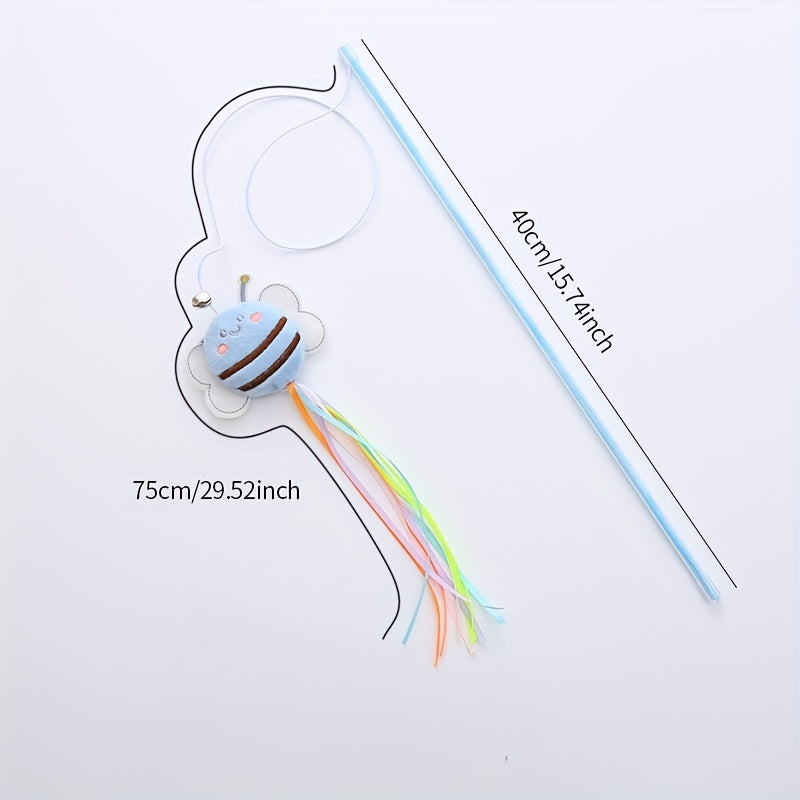 [Plush Bee Cat Teaser] Exquisite Plush Bee Shaped Cat Teaser | New with Fresh Plastic Pole and Color Matching Tassel