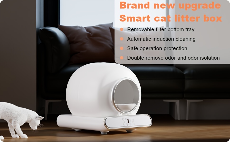 Upgraded Self-Cleaning Cat Litter Box - Self-Cleaning Box Odorless with Real-Time Monitoring And Safety Alarm